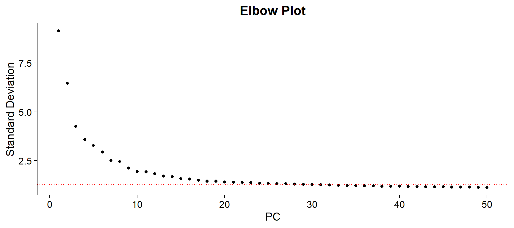 Some other the visualization tools that allow for easy exploration of the resulted PCs are “DimPlot()”, “DimHeatmap()” and “ElbowPlot()”: