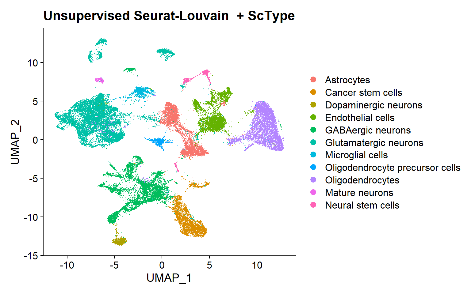 Unsupervised clustering with Seurat-Louvain + ScType annotation based on markers