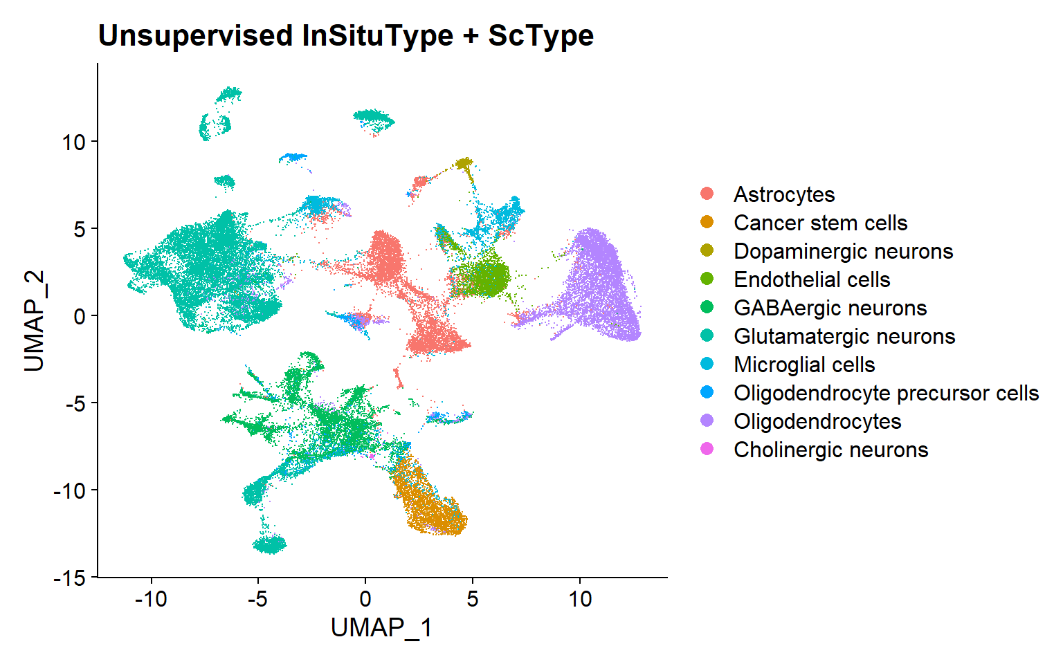 In this project, the proposed pipeline incorporates supervised and unsupervised InSituType, as well as an unsupervised clustering alternative, by executing the FindNeighbors and FindClusters functions from the Seurat package:
